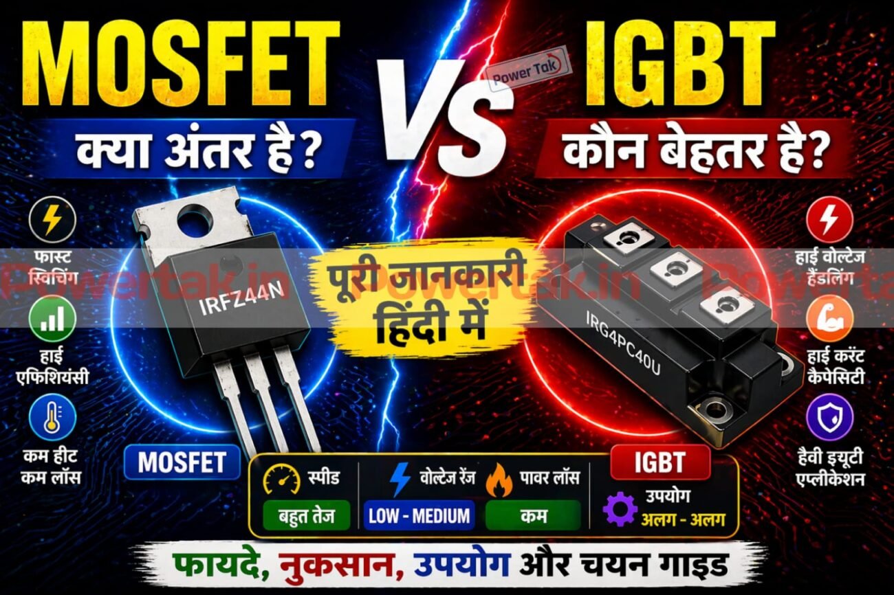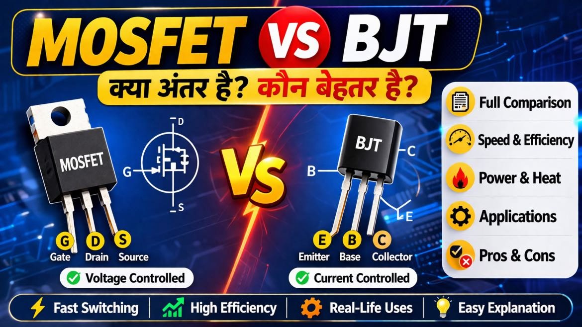 🔥 MOSFET vs BJT क्या है? MOSFET (Metal-Oxide-Semiconductor Field-Effect Transistor) और BJT (Bipolar Junction Transistor) दोनों transistor types हैं, लेकिन