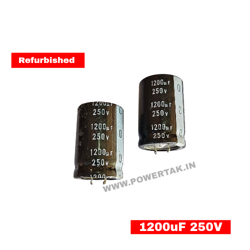 A 250V 1200µF capacitor is a large electrolytic capacitor designed to store electrical energy and handle voltages up to 250 volts. It has a capacitance of 1200 microfarads, which means it can store a significant amount of charge.